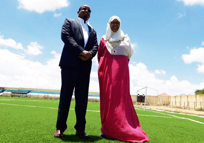 Cllr Ismail on a tour of the Mo Farah Stadium with Gabiley city mayor Mahamed-Amin Omar Abdi