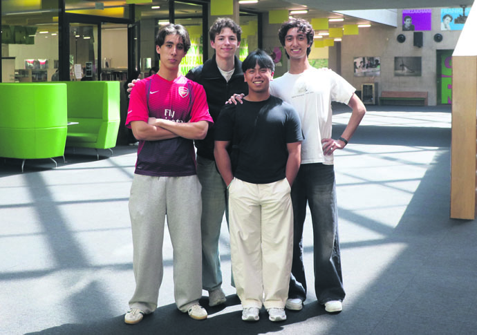 Friends celebrate at the end of seven years’ study at Westminster Academy, from the left, Sammy, Tomas, Garlan, and Baseer