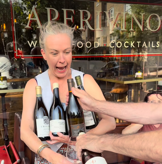 Bollinger first – sharp bubbles, a yolky aftertaste and citrus rind. “Twist the bottle, never the cork,” Victoria instructed with the solemnity of someone guiding communion.
