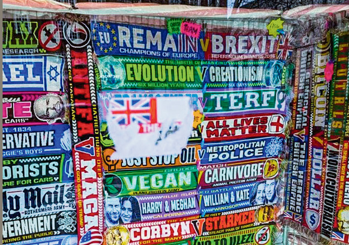 The Window Wonderland exhibition by the London Bomb Factory in Marylebone Road was vandalised repeatedly over Christmas, its director Pallas Citroen said. Union Jack and St George Cross stickers were placed on the windows with the words “Free UK” written in lipstick.