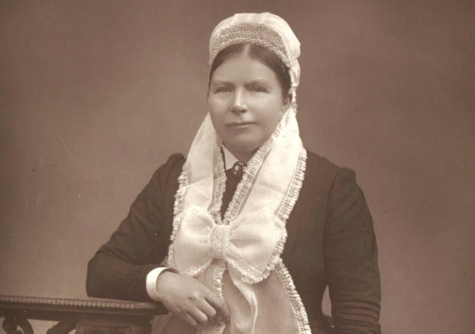 Made of black silk and with a cap of “beautiful lace, with strings and a huge bow that hung at the level of what might reasonably have expected to be her waist”, it is a reminder of just how much the uniforms have changed.