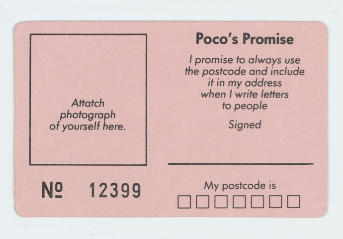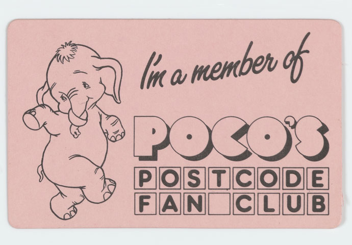 Poco’s Postcode Fan Club Membership Card 1980s; and, below, the back of the card. Images The Postal Museum