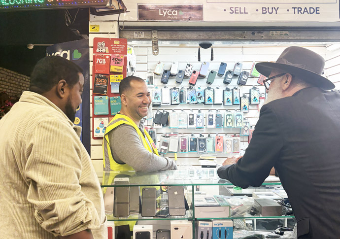 Ahmed Shalan, left, talks to his customer Chris