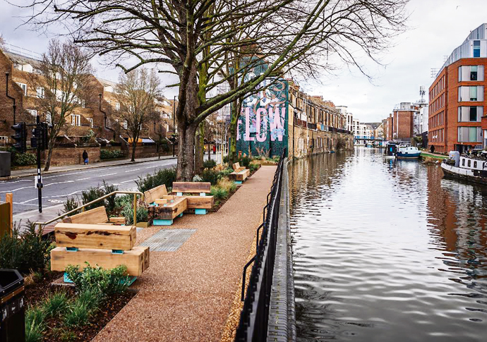 The Harrow Road Open Space, rebranded as Queen’s Park Canalside, has new seating, lighting, play features, and wildlife habitats.
