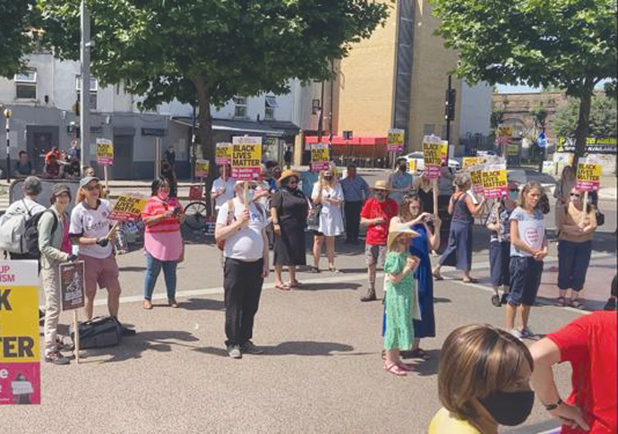 Islington’s sole Green councillor Caroline Russell, who also took part in the protest, said: “I am here because I am so proud of every single member of the England squad for the leadership they have shown in standing up to racism in the football stands, in the street and, disgracefully, in government.”