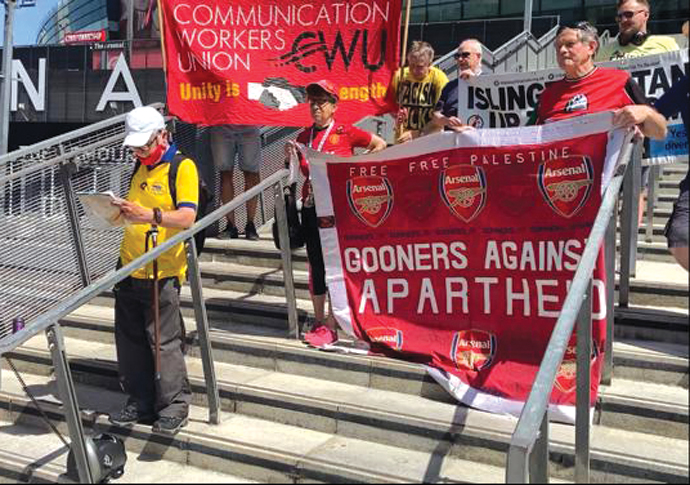 Dean Ryan, from the Stand Up to Racism group who organised the protest, said: “As Arsenal supporters everyone loves Bukayo Saka, but I have to say, when I look around the crowd today I can see a few different football shirts.