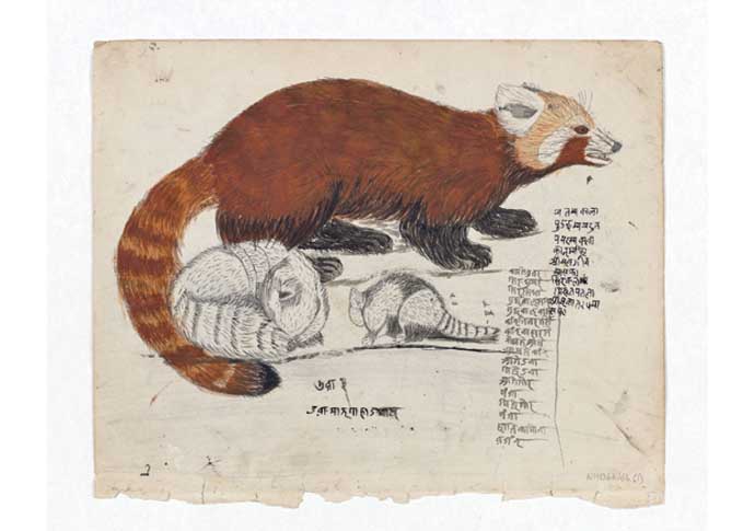 Field sketch of a red panda by an unknown artist for Brian Houghton Hodgson [The British Library]