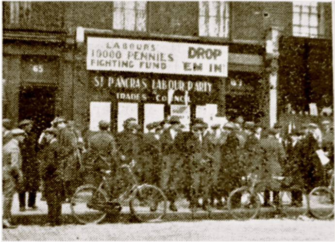 The local strike headquarters was at 67 Camden Road, then home to the South West St Pancras Constituency Labour Party and the then Trades Council. The Camden Road office served as distribution point for a daily strike bulletin.