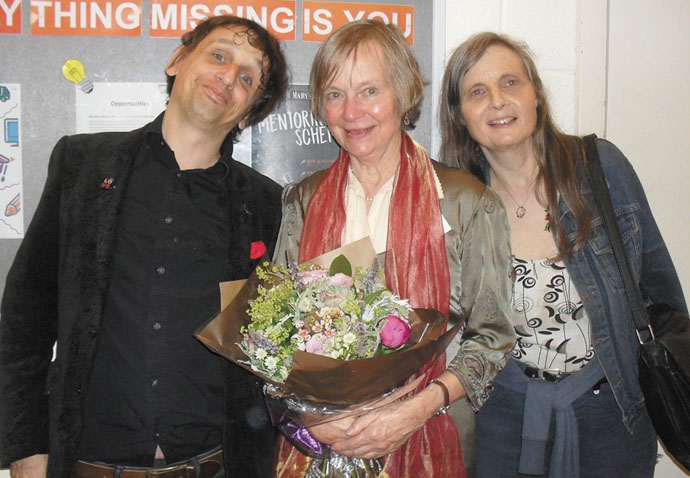 Stuart Low Trust founder Virginia Low, centre, with magician Gareth Foreman and longtime SLT supporter Patsy Keane on Friday