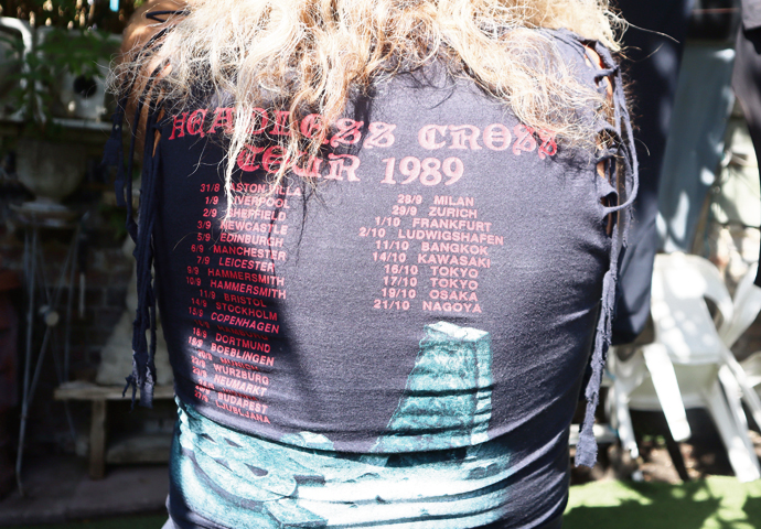 One of Mr Di Matteo’s tops shows his face alongside other Black Sabbath members while on the 1989 “Headless Cross” world tour.