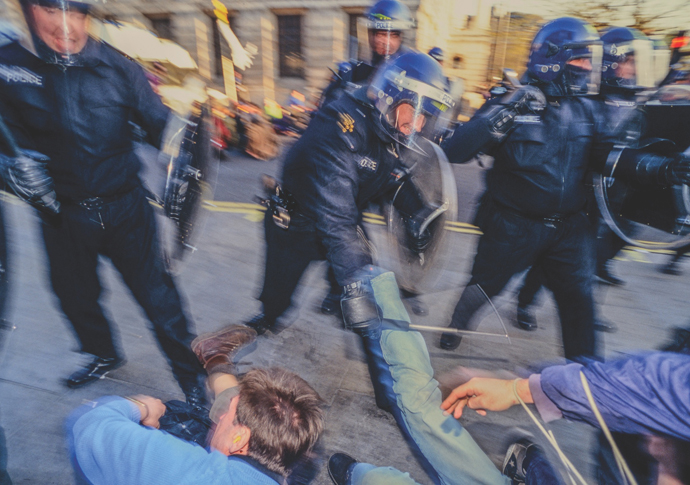 “In the 1980s, there was police brutality and obstruction, attacks on photographers and reporters – but it felt less organised. The police would just shove you about, stand in front of you. Then they started doing more aggressive surveillance and by the end of the last century, it was ramped up and they saw press photographers as the enemy,” he adds.