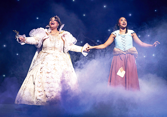 Jade Johnson as the Fairy Godmother and Siobhan James as Cinderella – classic rags to riches panto at the Hackney Empire
