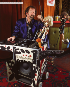 Originally made from a shopping trolley with a record deck and a speaker, he worked out it could fit one of his creations on the luggage rack on buses taking him into the West End for gigs.