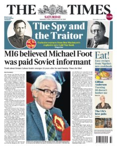 The source of the “new” revelations? A book about the very same Gordievsky by the newspaper’s veteran writer and historian, Ben Macintyre, who lives in Hampstead.  The article appeared to contain no new evidence, no paper trail – just further embell­ishment. I contacted Mr Macintyre yesterday (Wednesday) and he responded to say: “At no point do I suggest that Michael Foot was a spy, or even an agent in anything but the KGB understanding of that word, nor do I imply that Foot was unpatriotic, let alone treacherous, or had anything to do with Soviet intelligence after 1968.  But I do conclude that, in the 1960s, he was remarkably naive, open to manipulation and prepared to accept ‘Red Gold’…”
