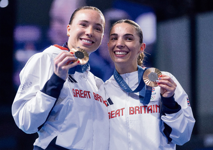 Yasmin Harper, left, and Scarlett Mew Jensen won Team GB’s first medals of the 2024 Games in the Women’s Synchronised 3m Springboard event [Team GB]