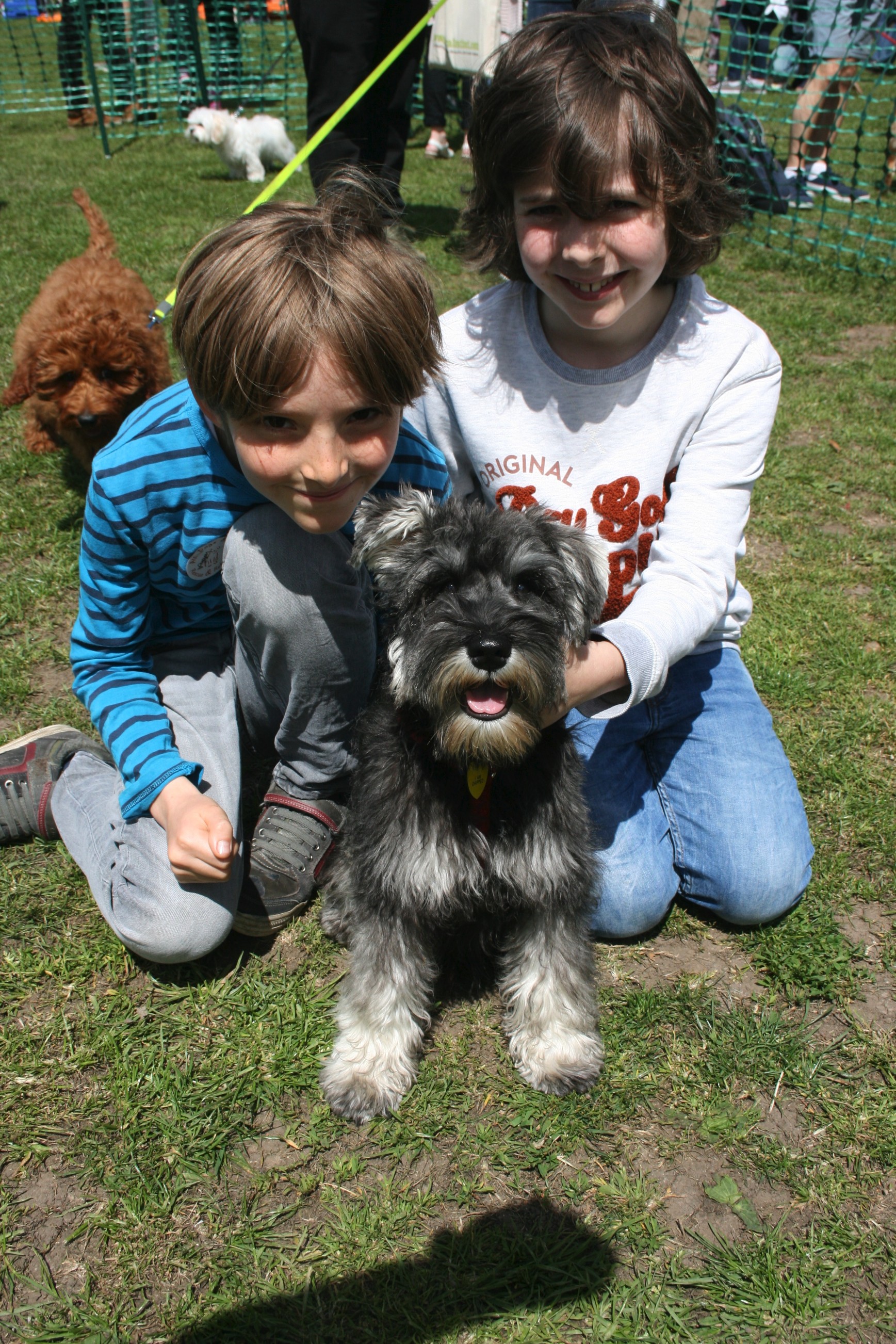 Billy Stanton, 8, and Jonah Brandon-Rocks, 9, with Monty, winner of the cutest pup contest