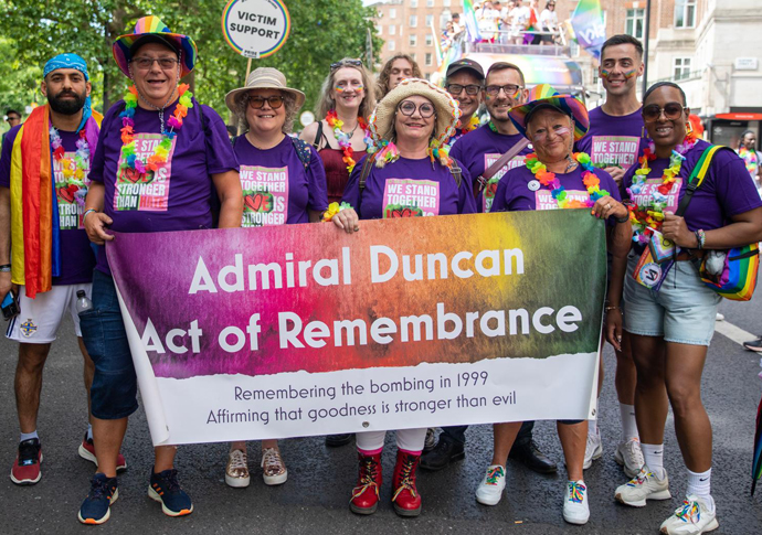 The Admiral Duncan Acts of Remembrance group that organises the annual vigil for victims of the Old Compton Street pub nail bomb attack of 25 years ago carried a banner.
