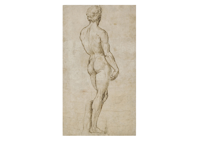 Raphael, after Michelangelo Buonarroti, David, c 1505-08, pen and brown ink on paper, 39.6 x 21.9cm [© The Trustees of the British Museum]