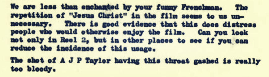 Once-confidential documents show how BBFC were concerned about scenes showing death of 'AJP Taylor'