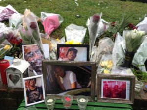 In Kentish Town, a group of around 100 were lighting candles and laying flowers last night next to another shrine dedicated Nuno Cardoso, a law student who died after collapsing in a police van in December, the circumstances of which are being investigated by a police watchdog.
