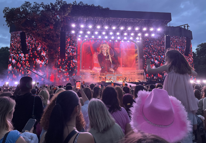 With minimal sparkly costume changes, the 18-song set flew by, Sabrina captivated an enchanted audience, drawing the set to a close hovering over the crowd in a cherry picker before launching into her big summer hit of last year Espresso while fireworks spread her sparkles across the city’s night sky as the long credits rolled for her team.