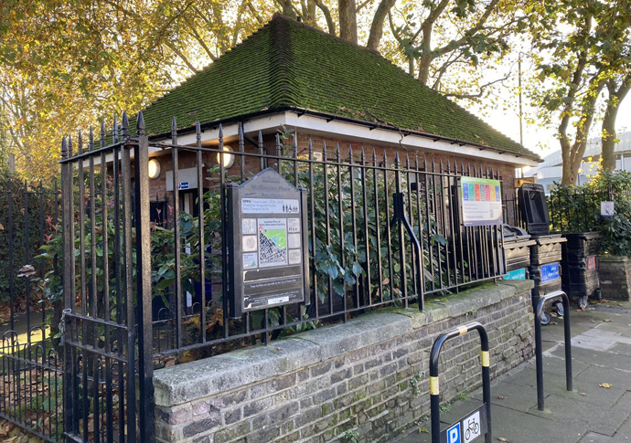 This facility near Baker Street station repotedly won the Loo of the Year in 1995. Located in a dark brick block on the north east corner of Paddington Street South Gardens, these are well known for their artwork. A large mural of a London street is visible from the gents’ entry and another is located above the urinals. The toilets were clean when we visited, although there is a lack of signage.