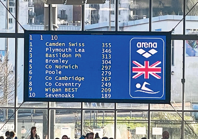 A closely fought competition produced plenty of thrills and spills, with the lead changing hands several times between Camden Swiss Cottage and closest placed rivals Plymouth Leander throughout the 51-event showpiece, which was held at the Cardiff International Pool.