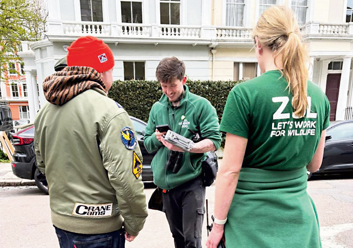 The Extra saw the search party in Primrose Hill on Good Friday, where they were using a handheld aerial to track Tony down, despite a contrary tip-off from passers-by who had spotted him flying south from Camden Town while they ate at Poppies Fish & Chips.