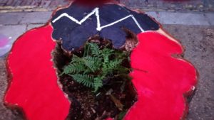 Bryn Jones said he hoped to draw attention to the removal of a horse chestnut in South End Green by daubing the sawn trunk with red and pink paint. The tree lost a branch in stormy weather on January 3 and was cut down later that day.