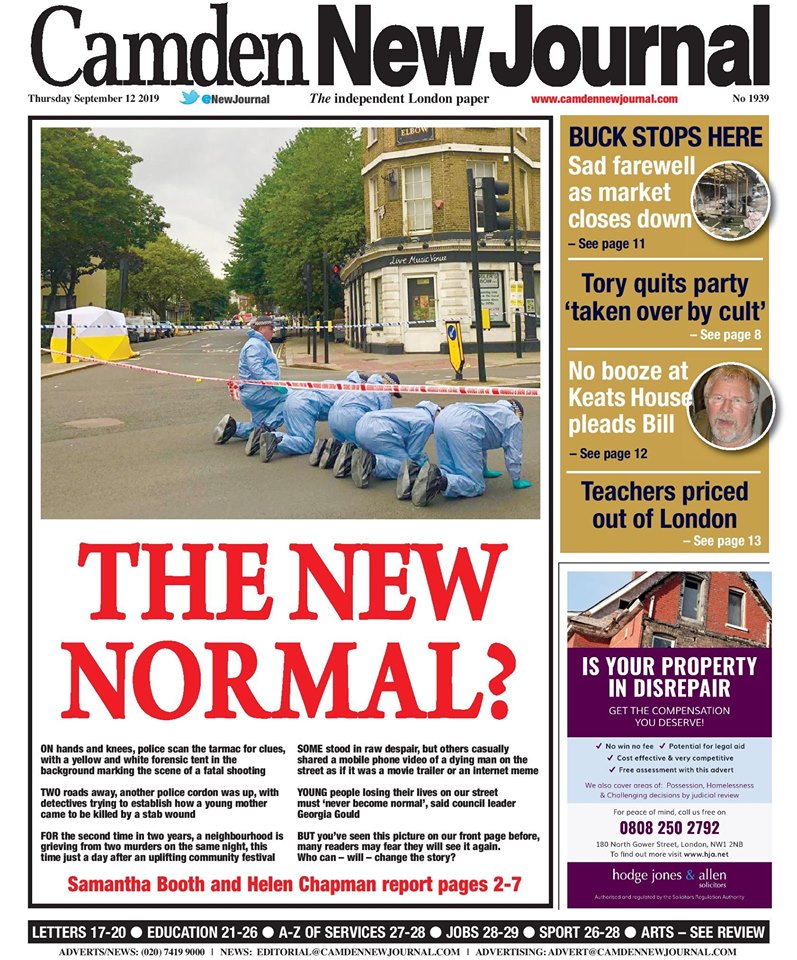 The CNJ’s front page yesterday (Thursday) about the painful regularity with which forensic tents and murder investigations are seen in Camden