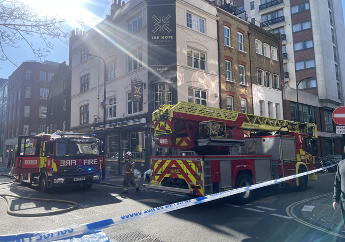 Firefighters at the scene of the blaze at So Shell in Fitzrovia [LFB]