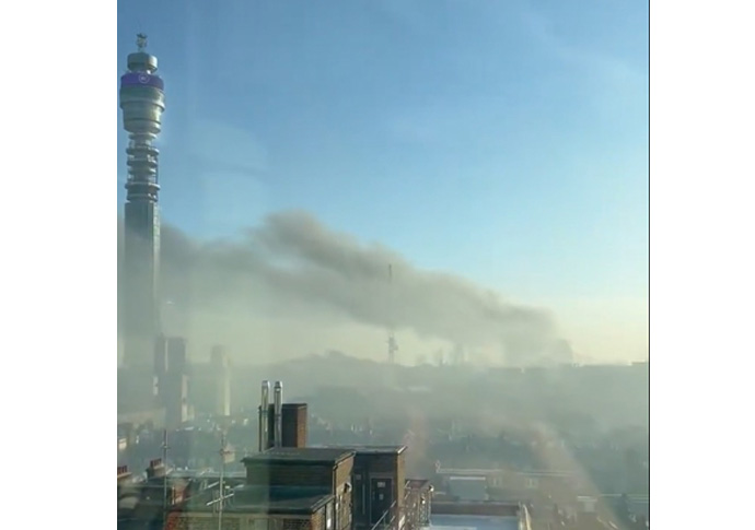 Thick plumes of smoke could be seen billowing across the West End after the fire broke out around 7.40am at So Shell, Fitzrovia.